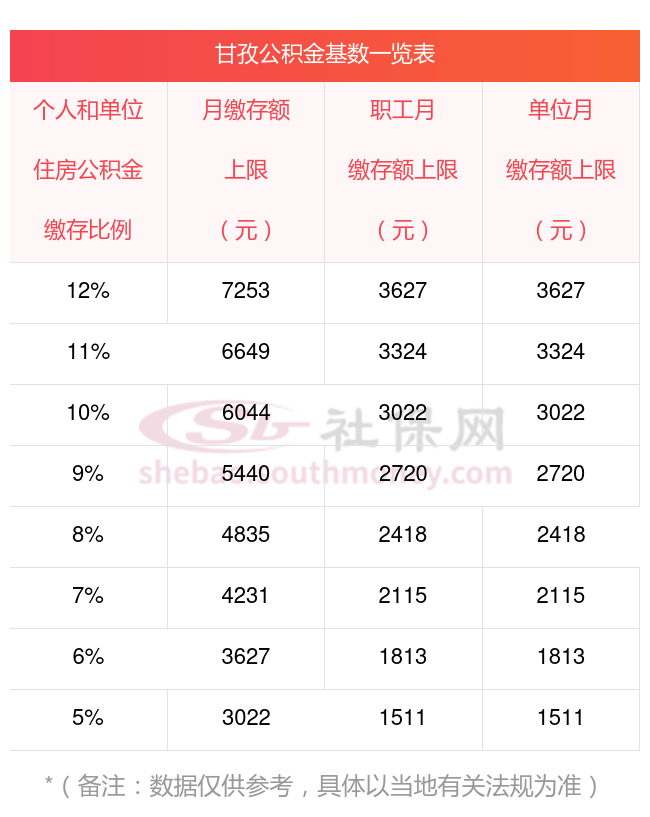 最新甘孜的住房公积金缴存基数范围是2420~35283,上限比例范围是5%-12%。