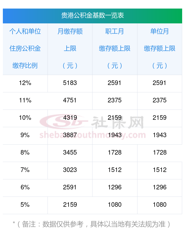最新贵港的住房公积金缴存基数范围是2420~35283,上限比例范围是5%-12%。