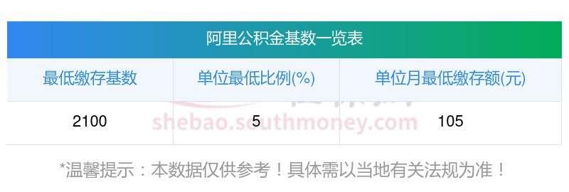 阿里住房公积金的基数下限标准如下: