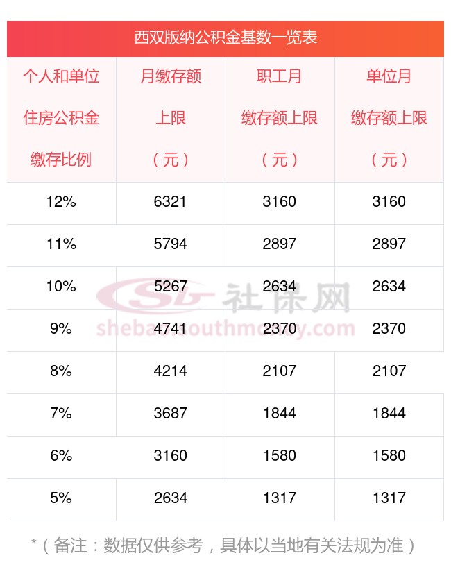 以下举例,可以从西双版纳不同比例计算得知公积金每月缴存额度的。