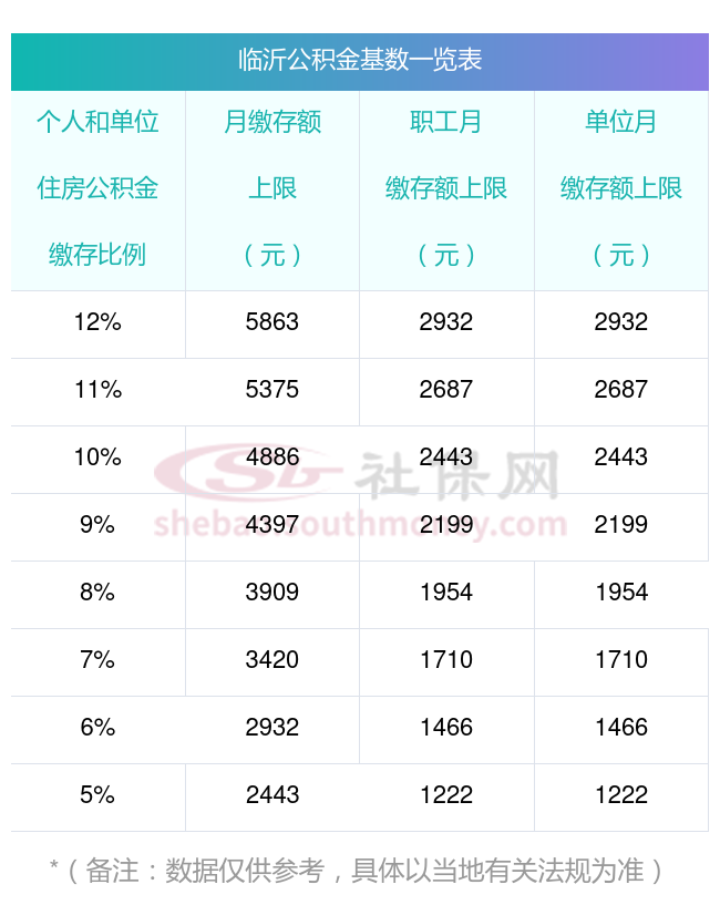 最新临沂的住房公积金缴存基数范围是2420~35283,上限比例范围是5%-12%。