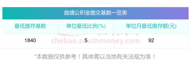 曲靖月缴存额下限标准: