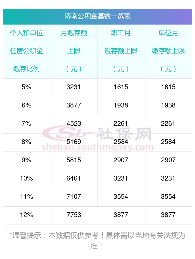 每月缴纳的住房公积金你了解多少?2025年济南住房公积金年度住房公积金缴存基数上限为35283元。如按照12%的缴存比例,最高每月可缴存8468元,对于不同的缴存比例对于的缴纳金额是不一样的。