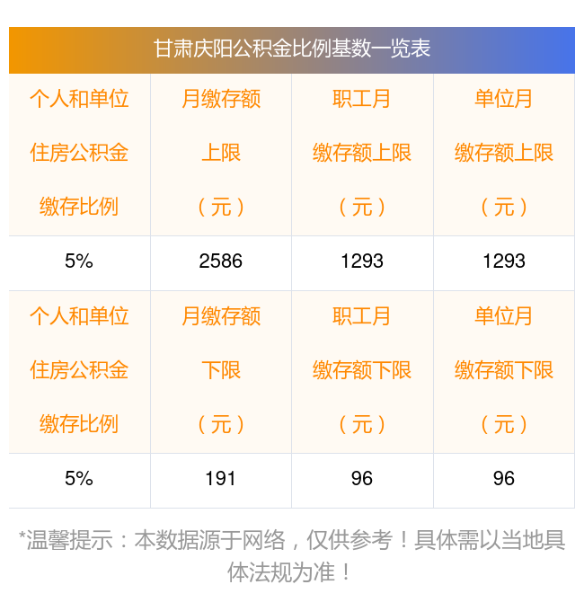 每月缴纳的住房公积金你了解多少?甘肃庆阳住房公积金年度住房公积金缴存基数比例最低5%。如按照最低基数2420元或最高基数35283元与缴存比例计算出不同缴费金额,职工就可以得知每月自己要出多少钱,这样能了解自己公积金账户的余额。