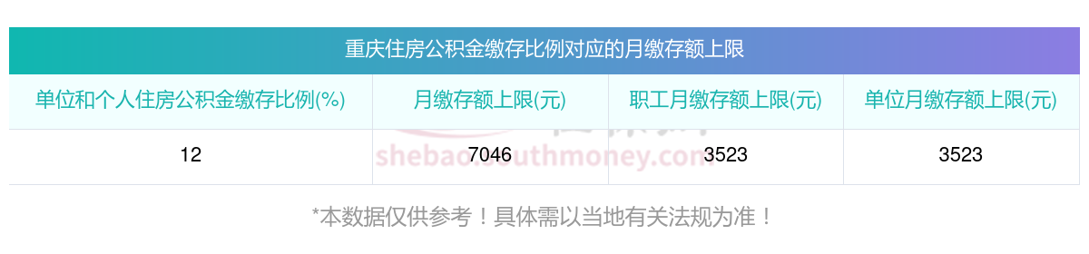 每月缴纳的住房公积金你了解多少?2025年重庆住房公积金年度住房公积金缴存基数上限为35283元。如按照12%的缴存比例,最高每月可缴存8468元,对于不同的缴存比例对于的缴纳金额是不一样的。