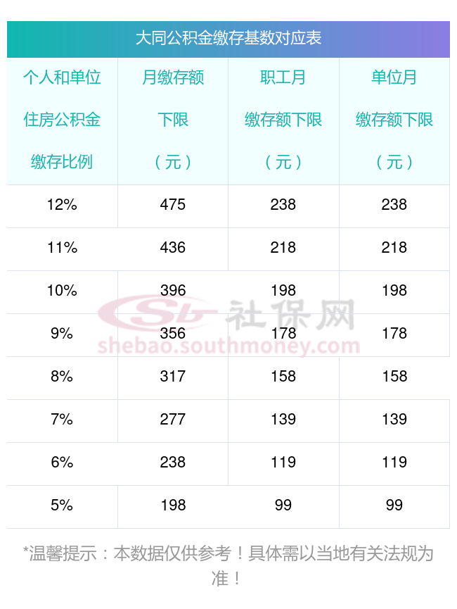大同公积金缴存额度=公积金缴存基数乘以缴存比例。
