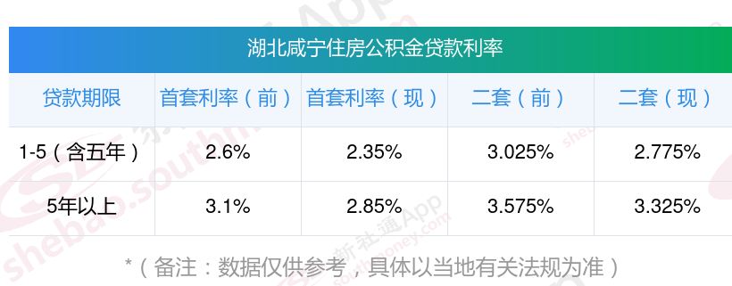 随着央行下调个人住房公积金贷款利率0.25个百分点。很多地方地同步下调住房公积金贷款利率。5月17日下午,央行宣布——自次日起,下调个人住房公积金贷款利率0.25个百分点。5年以下(含5年)和5年以上首套个人住房公积金贷款利率分别调整为2.35%和2.85%,5年以下(含5年)和5年以上第二套个人住房公积金贷款利率分别调整为不低于2.775%和3.325%。一起来看看湖北咸宁公积金如何下调的?办理贷款能省多少钱?