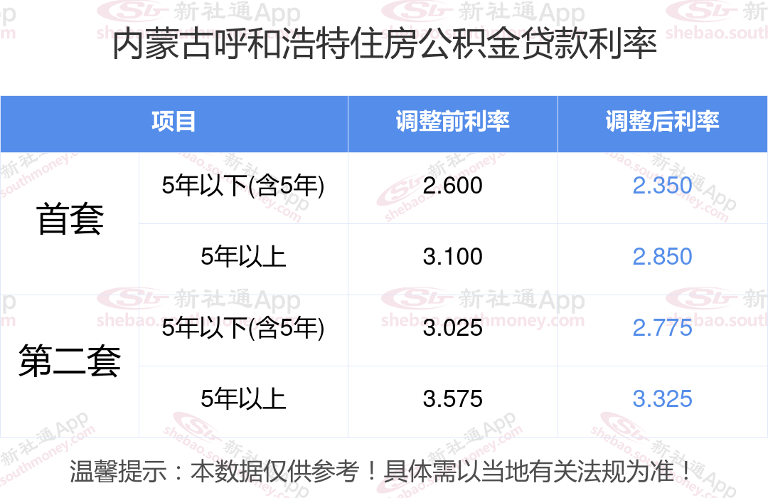 最新央行下调个人住房公积金贷款利率,首套和二套房利率分别调整为2.350%、2.850%和不低于2.775%、3.325%,自2024年5月18日起执行。多地跟进调整,具体可查询当地公积金官网。那现在内蒙古呼和浩特住房公积金贷款利率调整后是多少?内蒙古呼和浩特个人住房贷款利率最低是多少?下面是新社通APP小编整理的相关住房公积金贷款利率及计算方法的知识,快收藏好了!