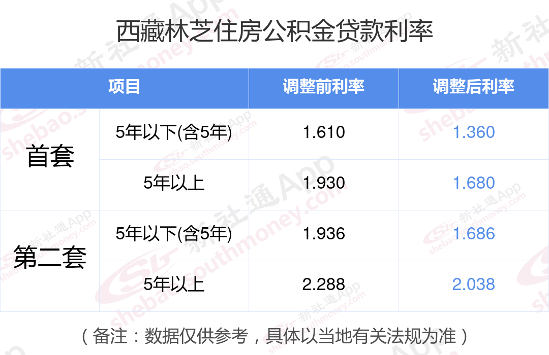 最新央行下调个人住房公积金贷款利率,首套和二套房利率分别调整为1.360%、1.680%和不低于1.686%、2.038%,自2024年5月18日起执行。多地跟进调整,具体可查询当地公积金官网。那现在西藏林芝住房公积金贷款利率调整后是多少?西藏林芝个人住房贷款利率最低是多少?下面是新社通APP小编整理的相关住房公积金贷款利率及计算方法的知识,快收藏好了!