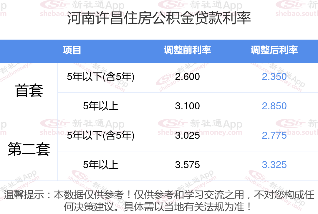 最新央行下调个人住房公积金贷款利率,首套和二套房利率分别调整为2.350%、2.850%和不低于2.775%、3.325%,自2024年5月18日起执行。多地跟进调整,具体可查询当地公积金官网。那现在河南许昌住房公积金贷款利率调整后是多少?河南许昌个人住房贷款利率最低是多少?下面是新社通APP小编整理的相关住房公积金贷款利率及计算方法的知识,快收藏好了!