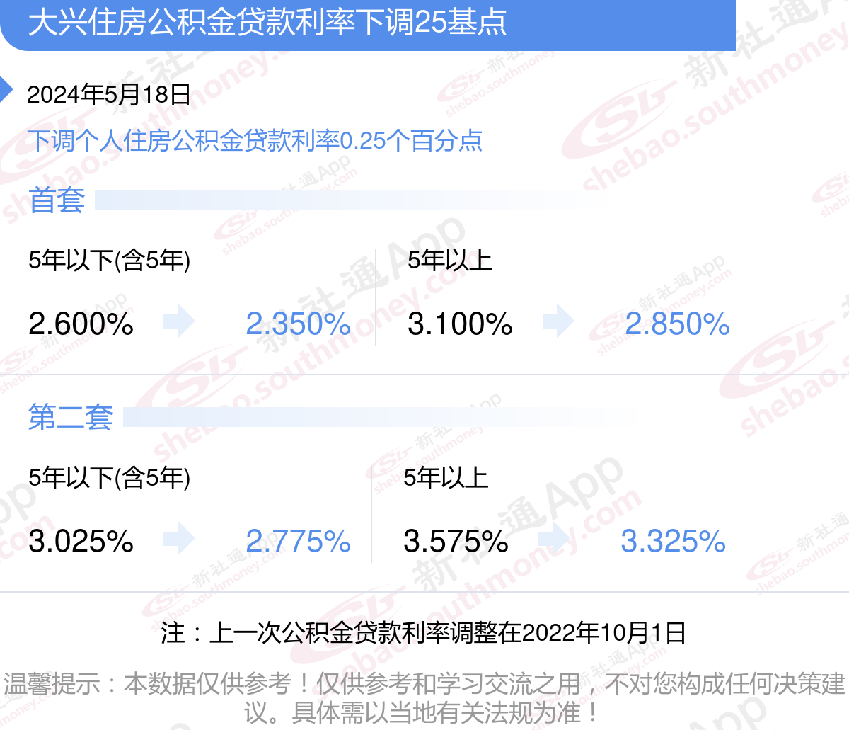 公积金贷款是职工购房的重要资金来源,具有利率低、期限长等优点。下面是新社通APP小编整理的相关贷款知识,希望能帮助到你。2024年大兴公积金贷款利率是多少?