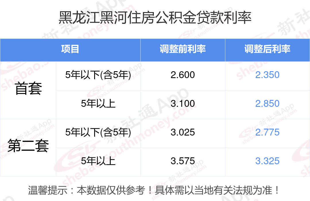 最新央行下调个人住房公积金贷款利率,首套和二套房利率分别调整为2.350%、2.850%和不低于2.775%、3.325%,自2024年5月18日起执行。多地跟进调整,具体可查询当地公积金官网。那现在黑龙江黑河住房公积金贷款利率调整后是多少?黑龙江黑河个人住房贷款利率最低是多少?下面是新社通APP小编整理的相关住房公积金贷款利率及计算方法的知识,快收藏好了!