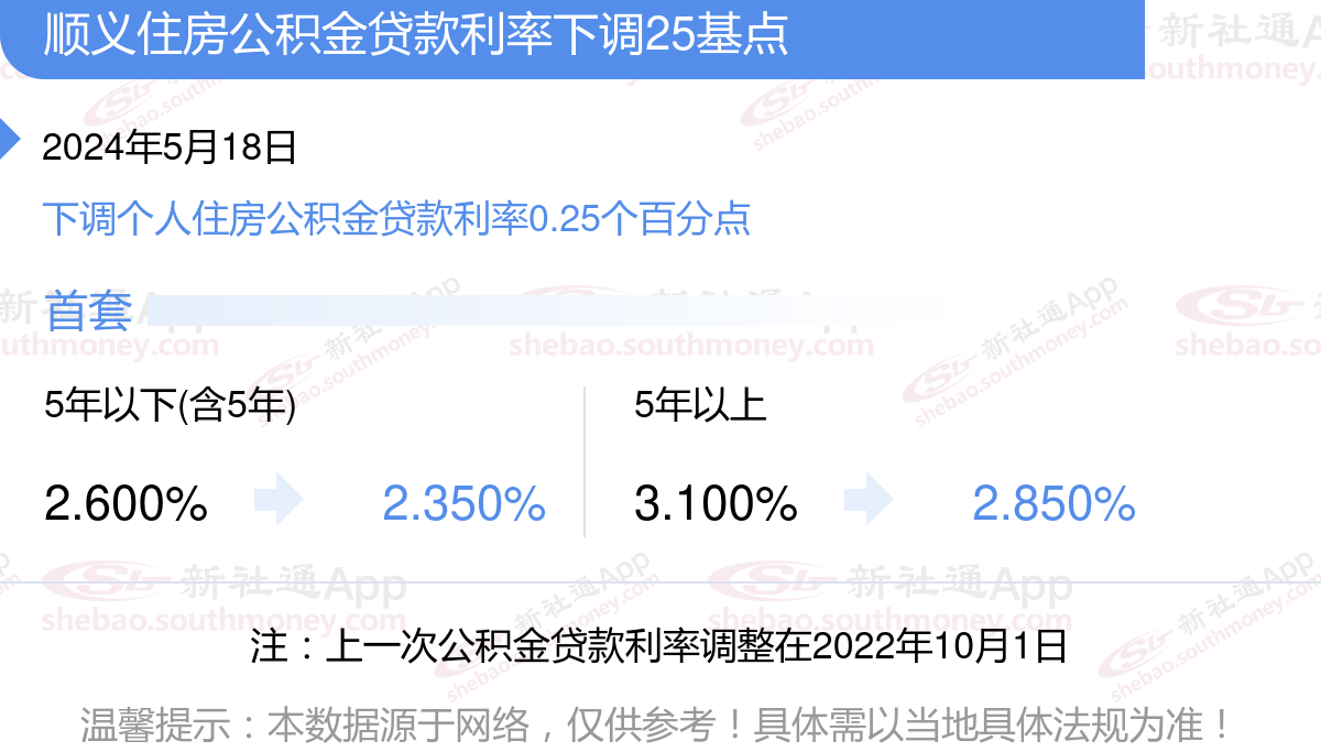 根据2024年5月17日顺义住房公积金,公布关于下调个人住房公积金贷款利率的通告,整理如下: