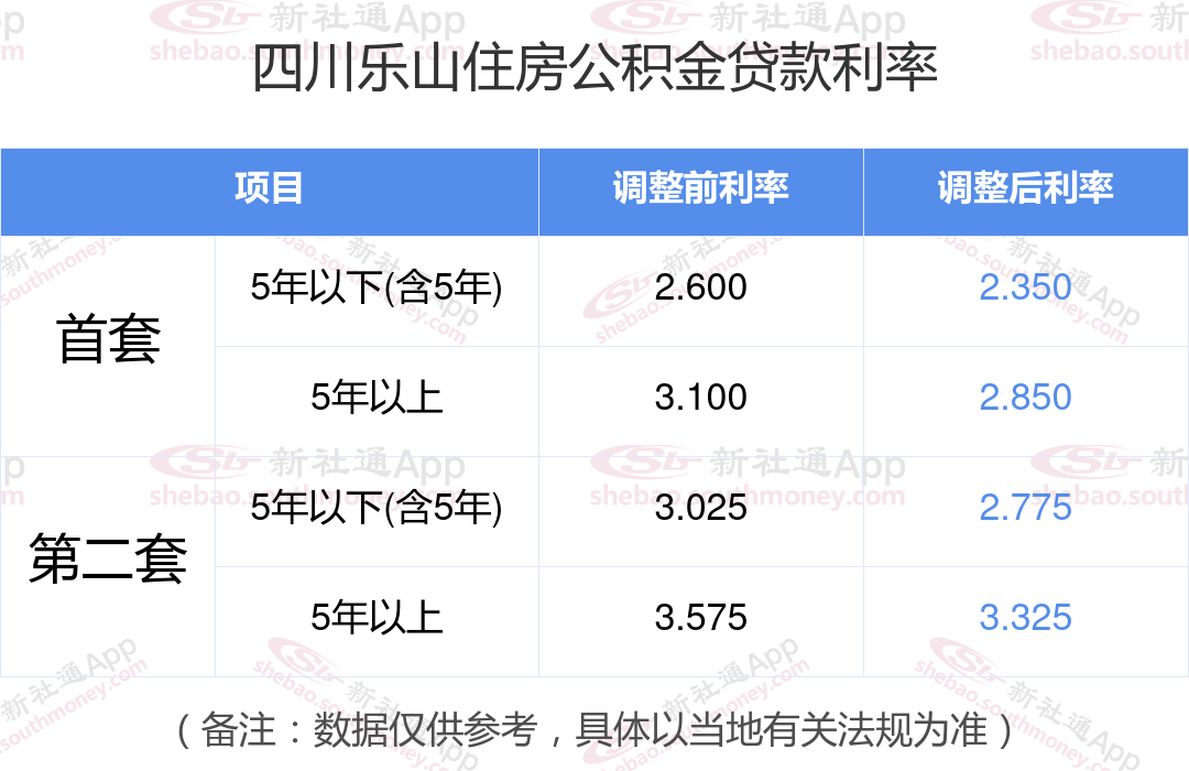 最新央行下调个人住房公积金贷款利率,首套和二套房利率分别调整为2.350%、2.850%和不低于2.775%、3.325%,自2024年5月18日起执行。多地跟进调整,具体可查询当地公积金官网。那现在四川乐山住房公积金贷款利率调整后是多少?四川乐山个人住房贷款利率最低是多少?下面是新社通APP小编整理的相关住房公积金贷款利率及计算方法的知识,快收藏好了!