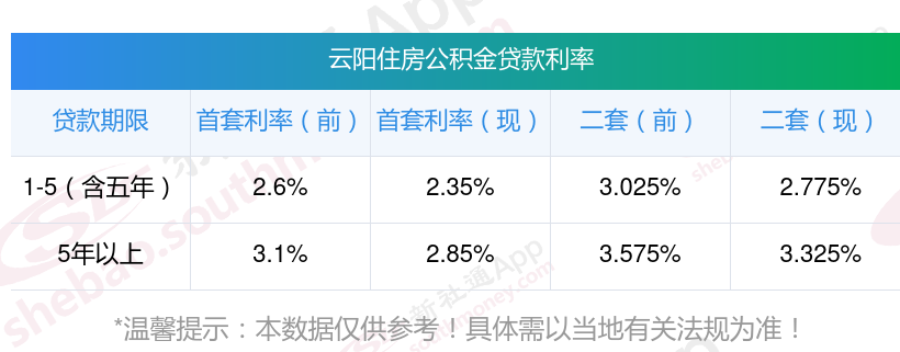 2025年云阳公积金贷款利率是多少?