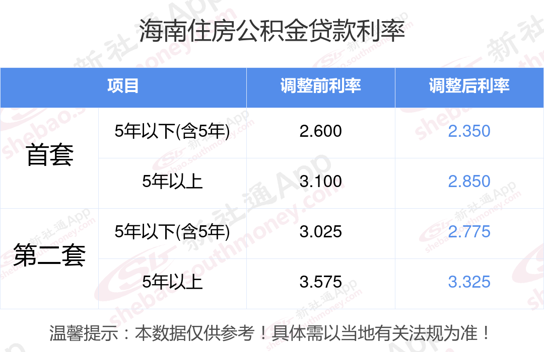 最新央行下调个人住房公积金贷款利率,首套和二套房利率分别调整为2.350%、2.850%和不低于2.775%、3.325%,自2024年5月18日起执行。多地跟进调整,具体可查询当地公积金官网。那现在海南住房公积金贷款利率调整后是多少?海南个人住房贷款利率最低是多少?下面是新社通APP小编整理的相关住房公积金贷款利率及计算方法的知识,快收藏好了!
