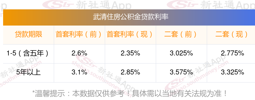 近日,中国人行宣布,自5月18日起,下调个人住房公积金贷款利率0.25个百分点,5年以下(含5年)和5年以上首套个人住房公积金贷款利率分别调整为2.350%和2.850%,5年以下(含5年)和5年以上第二套个人住房公积金贷款利率分别调整为不低于2.775%和3.325%。现在武清个人住房贷款利率最低是多少?下调的公积金贷款利率后办理可以省下多少钱的?下面是新社通APP小编整理的相关贷款知识,希望能帮助到你。