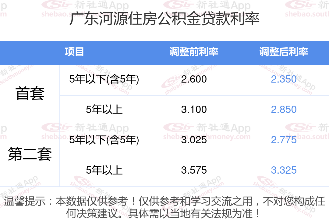 最新央行下调个人住房公积金贷款利率,首套和二套房利率分别调整为2.350%、2.850%和不低于2.775%、3.325%,自2024年5月18日起执行。多地跟进调整,具体可查询当地公积金官网。那现在广东河源住房公积金贷款利率调整后是多少?广东河源个人住房贷款利率最低是多少?下面是新社通APP小编整理的相关住房公积金贷款利率及计算方法的知识,快收藏好了!