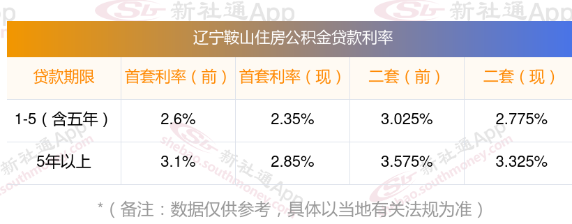 近日,中国人行宣布,自5月18日起,下调个人住房公积金贷款利率0.25个百分点,5年以下(含5年)和5年以上首套个人住房公积金贷款利率分别调整为2.350%和2.850%,5年以下(含5年)和5年以上第二套个人住房公积金贷款利率分别调整为不低于2.775%和3.325%。现在辽宁鞍山个人住房贷款利率最低是多少?下调的公积金贷款利率后办理可以省下多少钱的?下面是新社通APP小编整理的相关贷款知识,希望能帮助到你。
