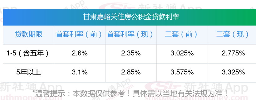 根据2024年5月17日甘肃嘉峪关住房公积金,公布关于下调个人住房公积金贷款利率的通告,整理如下: