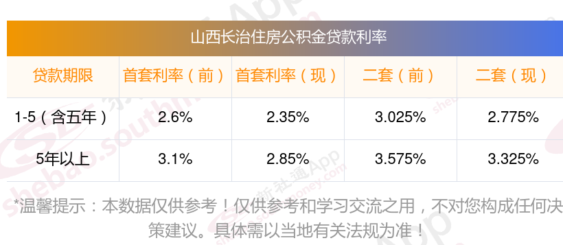 山西长治住房公积金贷款利率是多少,山西长治住房公积金贷款利率参照如下: