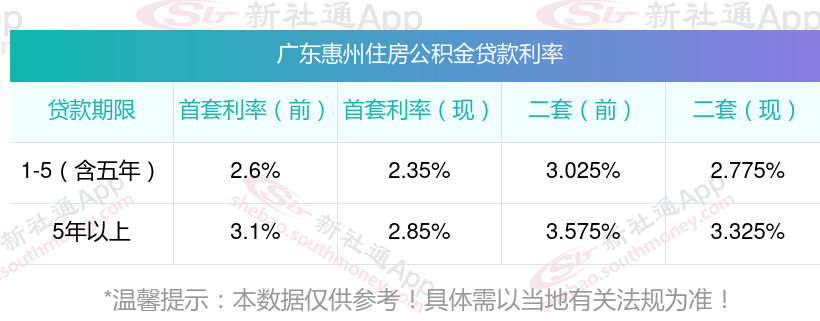 2025年广东惠州公积金贷款利率是多少?