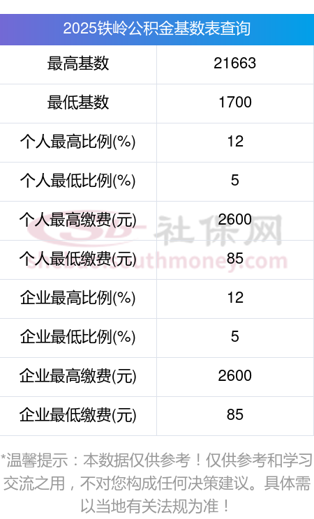 铁岭公积金缴费标准最新调整2025年是多少?下面跟随社保网小编一一了解一下。