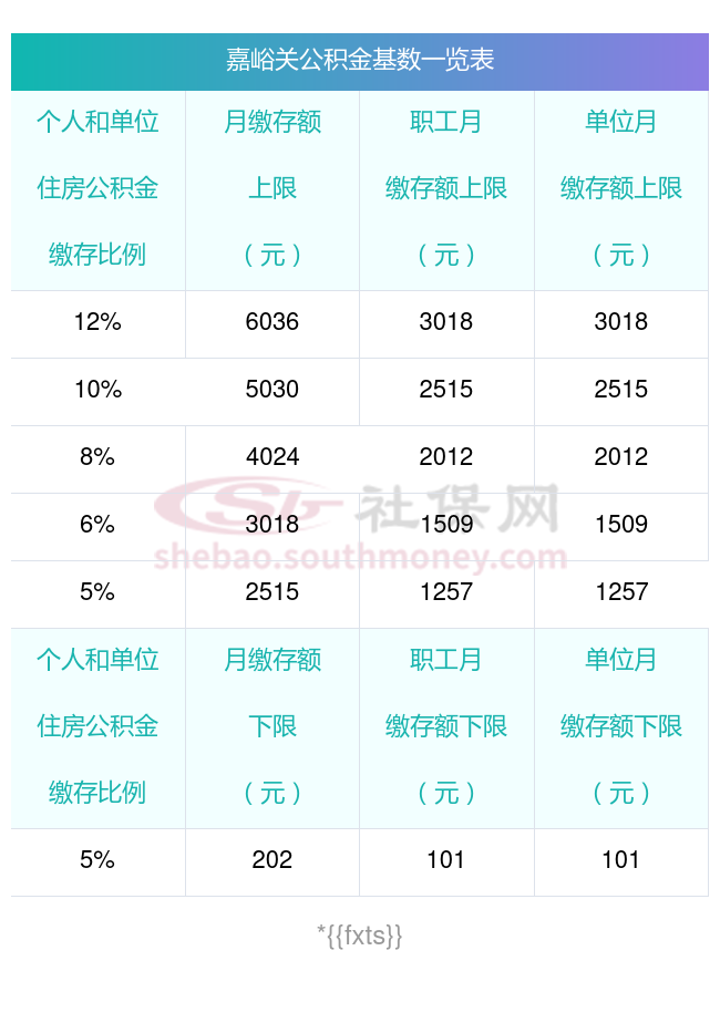比如嘉峪关缴纳公积金不同比例金额一览: