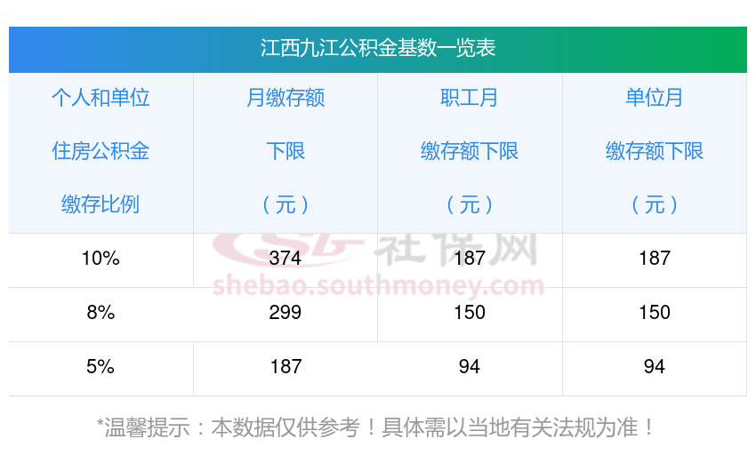 公积金缴存是由职工个人公积金缴存和职工所在单位为职工公积金缴存的公积金两部分构成,属于职工个人所有。住房公积金每月缴费基数怎么算的。江西九江调整后最低基数是多少?