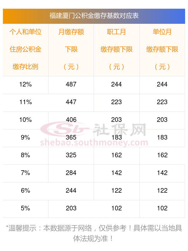 一、住房公积金扣费标准福建厦门