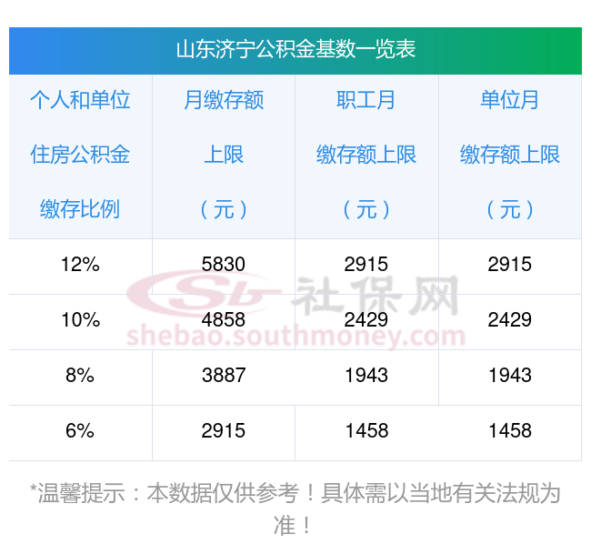 关于住房公积金每月职工企业都有缴纳的,但就不太了解具体的金额是怎么计算的?包括哪些几部分组成的?其实,住房公积金缴纳基数及比例依据法规和地方经济条件设定,通常为5%至12%,考虑经济水平、社保、税收及职工收入。比例调整反映宏观调整控制,税收法规也影响缴纳决策。未来,随着经济发展和社会保护完善,公积金缴纳比例将更合理公平。下面随新社通APP小编来了解山东济宁公积金缴存基数和比例是怎么计算的?