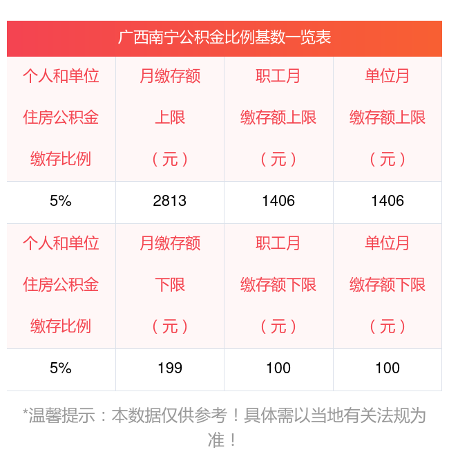 一、住房公积金扣费标准广西南宁