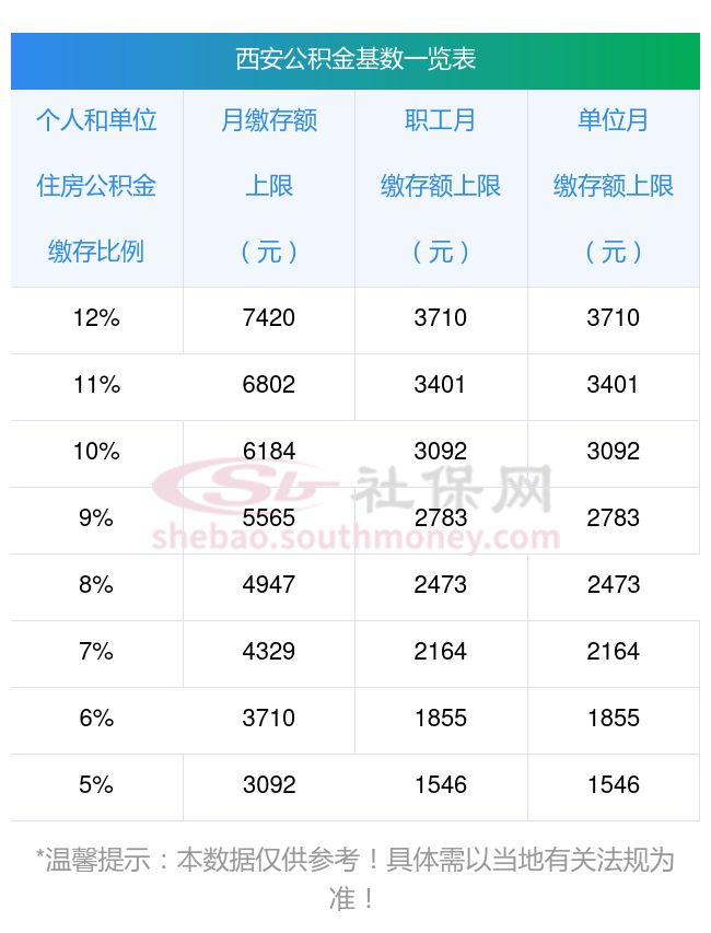西安住房公积金月缴存额下限是多少?住房公积金缴存比例及基数范围如下: