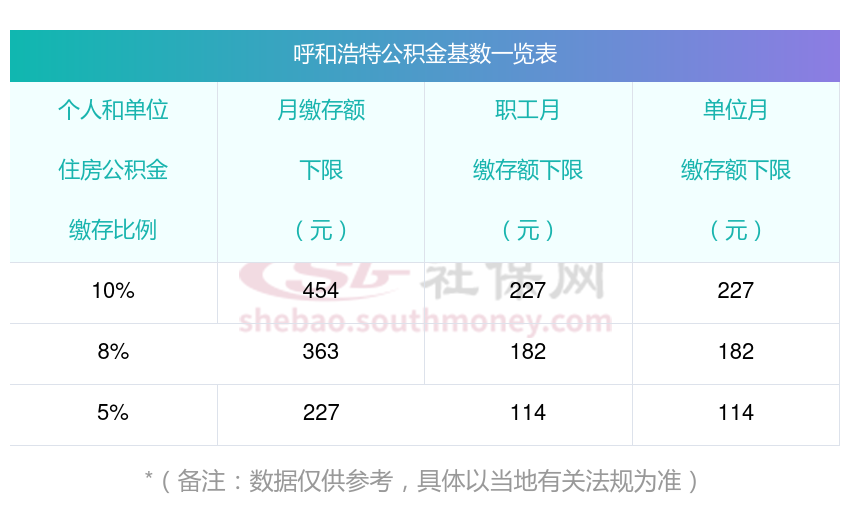 比如呼和浩特缴纳公积金不同比例金额一览: