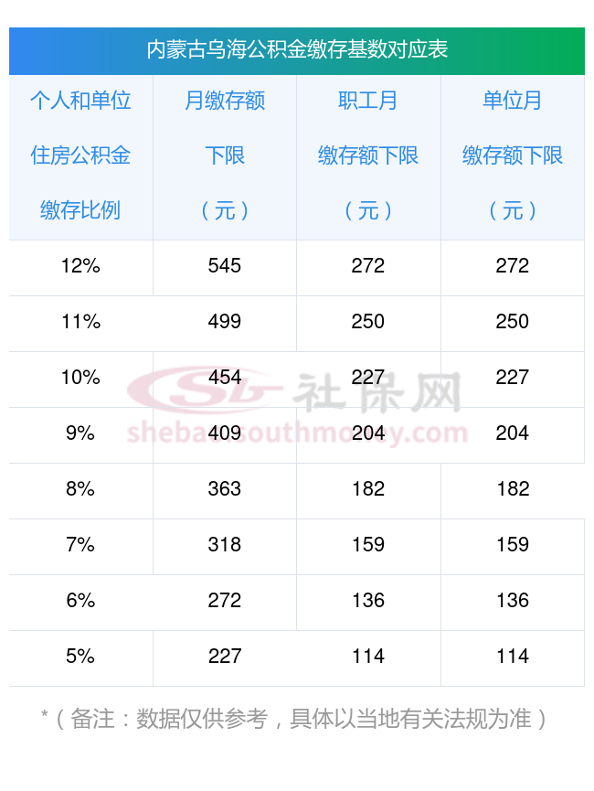 一、住房公积金扣费标准内蒙古乌海