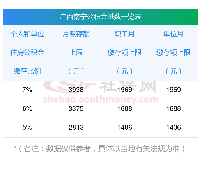 广西南宁公积金缴费标准最新调整2025年是多少?下面跟随社保网小编一一了解一下。