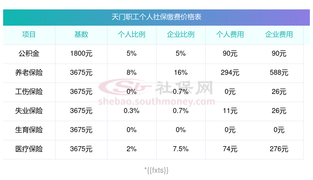 据新社通app获悉:天门企业职工社保缴费基数为:3579.00元,天门社保要多少钱?2025年个人社保缴费标准表(最低标准)?: