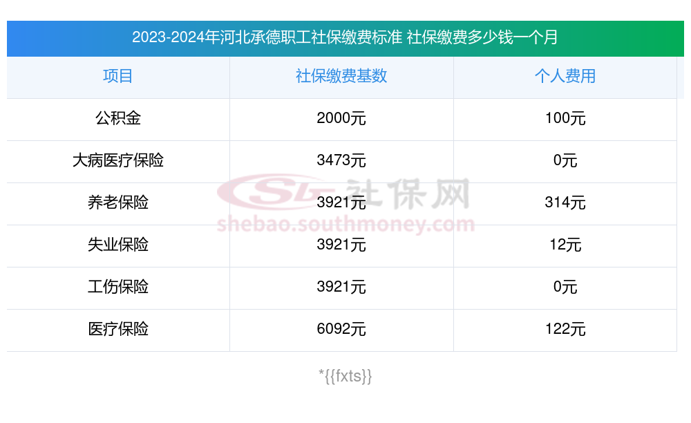 河北承德职工社保缴费多少钱?河北承德职工社保缴费基数最新参考为:3579.00,具体如下:
