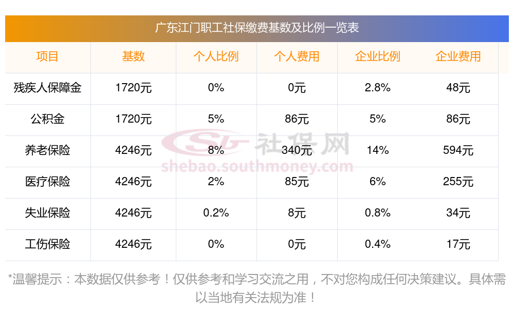 二、广东江门职工社保缴费基数是多少,广东江门2025年社保缴费多少钱一个月?