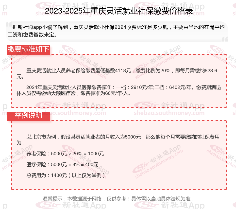 2025年重庆灵活就业人员社保需要交多少钱?随着经济社会的不断发展,灵活就业群体也日益壮大,其社保缴费问题也愈发受到关注。接下来随新社通APP小编一起来看看灵活就业群体社保缴费问题吧。