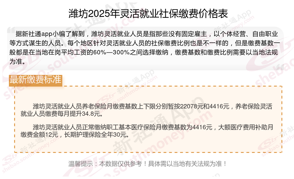 以上就是潍坊灵活就业社保缴费的全部内容,数据及内容供参考!希望对你有帮助,欢迎关注新社通解锁更多社保专业资讯。