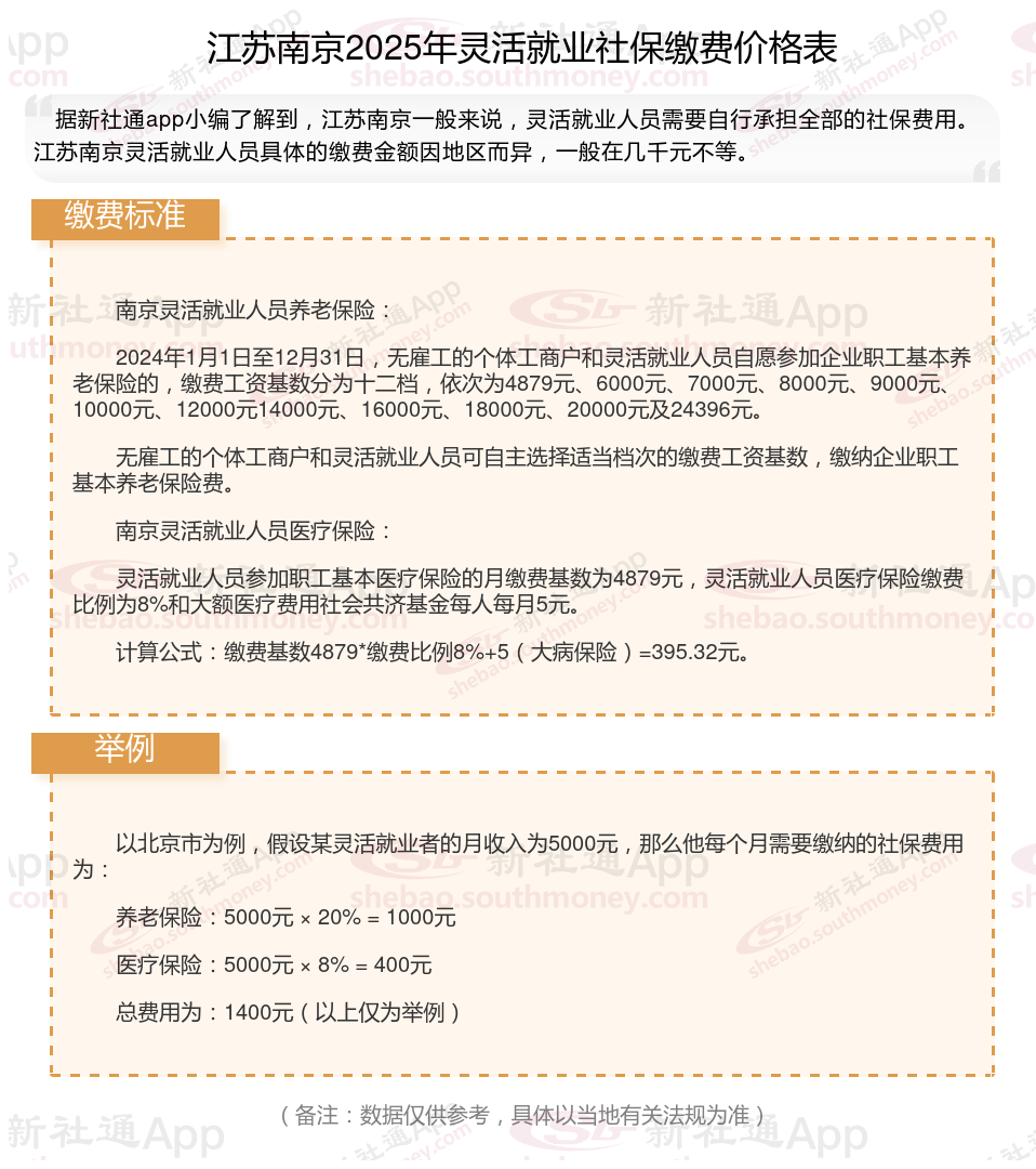 随着经济社会的不断发展,灵活就业群体不断地日益壮大,其社保缴费问题也愈发受到关注。那么2025年江苏南京灵活就业人员社保交多少钱,你了解2025年江苏南京灵活就业人员社保缴费基数及比例吗,接下来随新社通APP小编一起来看看。