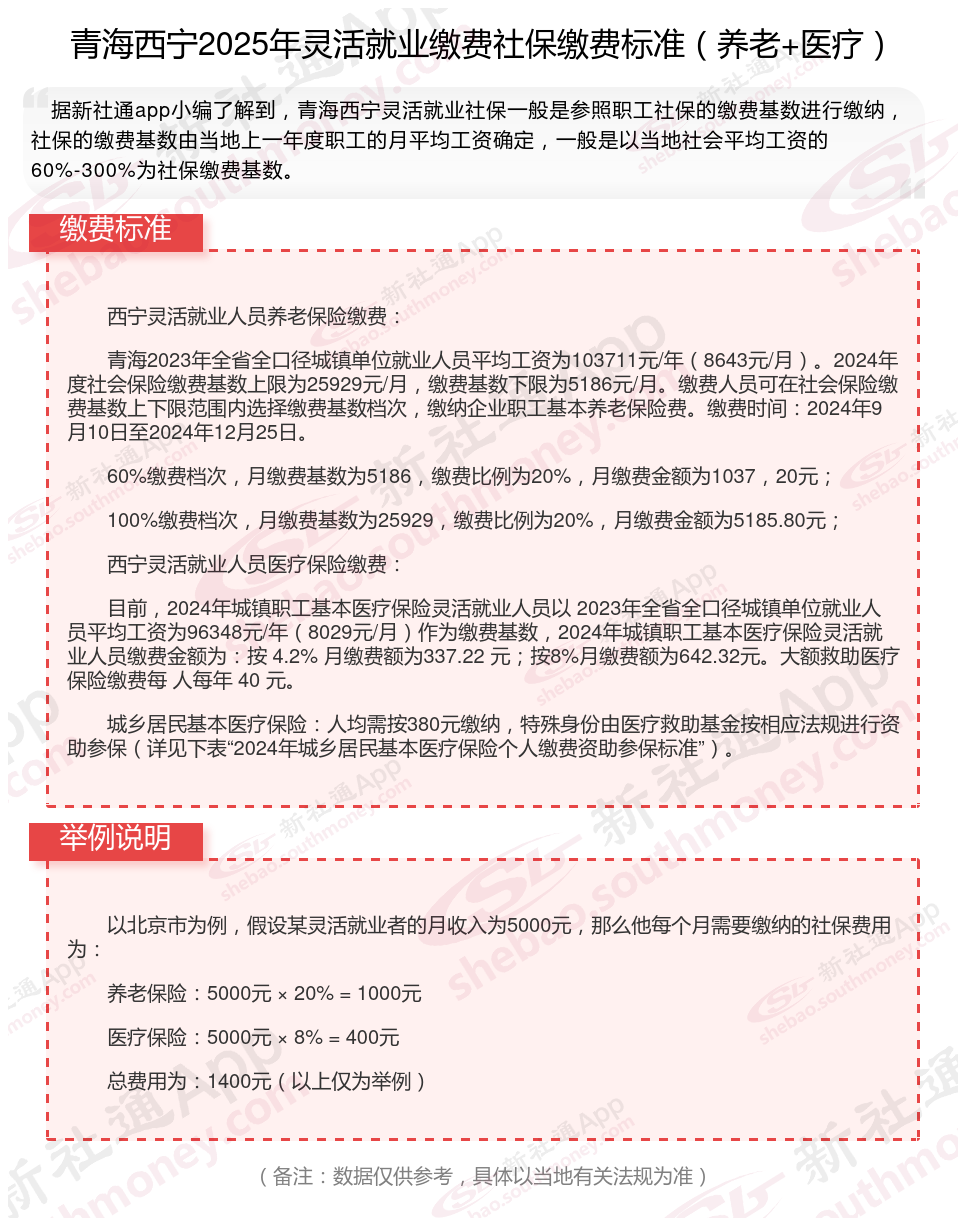 二、青海西宁灵活就业社保缴费基数及比例最新消息