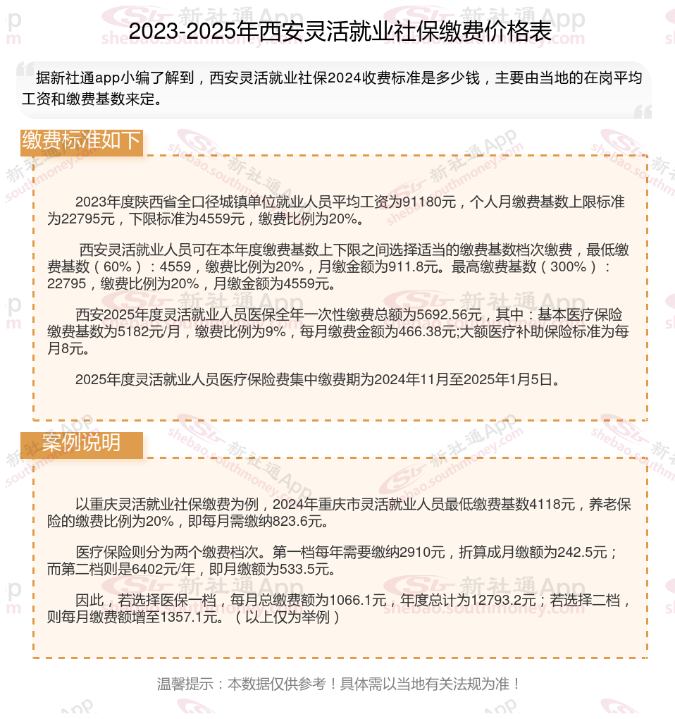一、2024年西安灵活就业社保缴费基数、比例最新消息