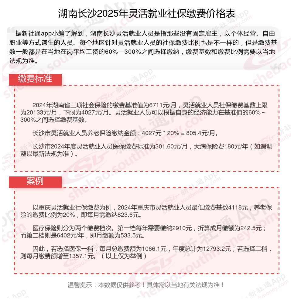一、2024年湖南长沙灵活就业社保缴费基数、比例最新来了,看看是多少?