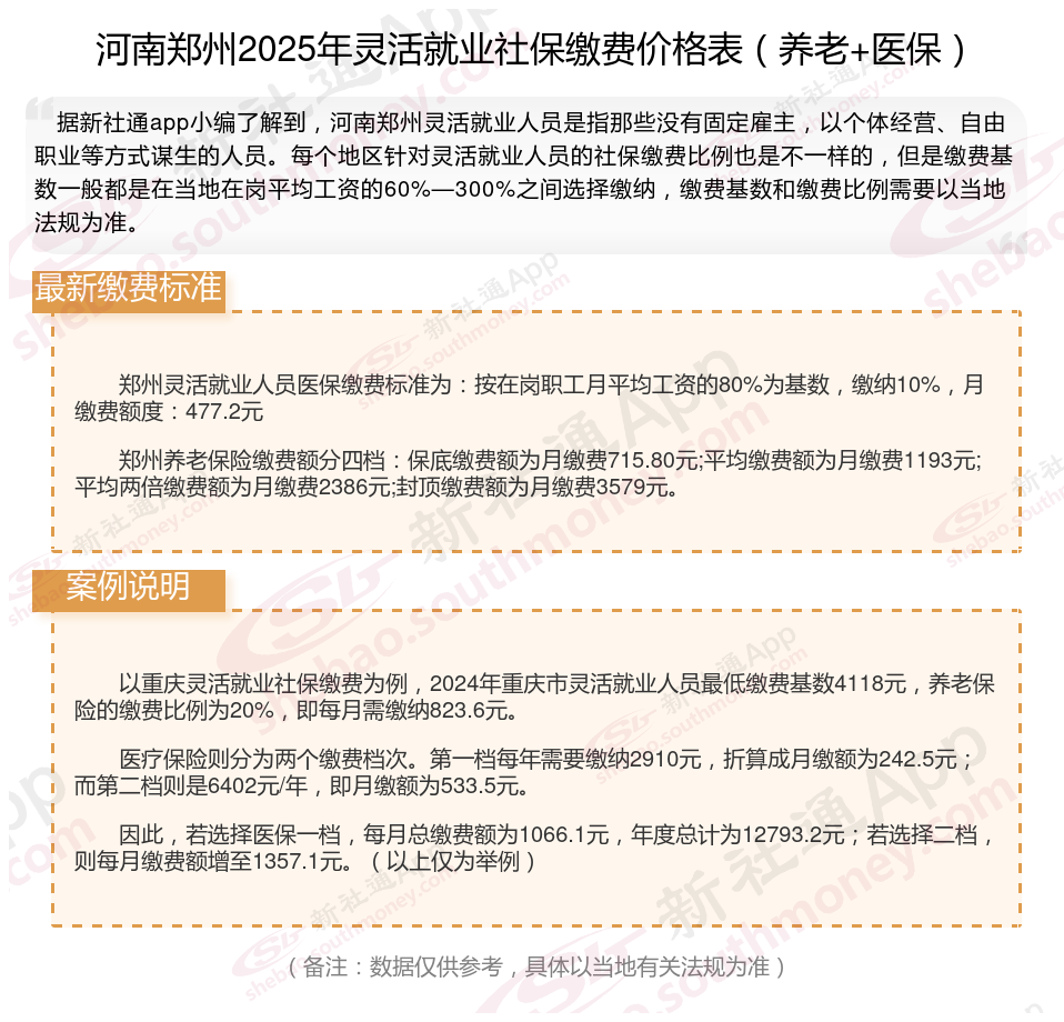 三、2025年河南郑州灵活就业社保缴费标准,最新如下: