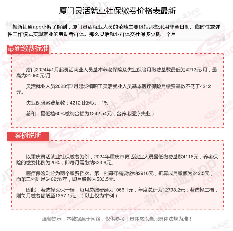 厦门灵活就业人员社保缴费档次表:一般分为五个档次,具体为上年度在岗职工平均工资的60%、70%、80%、90%和100%。灵活就业人员可以根据自己的意愿选择缴费档次,缴费比例为20%,其中12%进入统筹基金,8%进入个人账户。