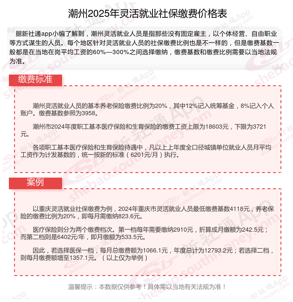 二、潮州2024年灵活就业社保缴费基数及比例最新消息
