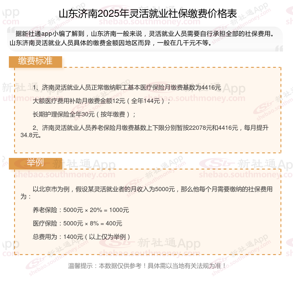 三、2025年山东济南灵活就业社保缴费标准,最新如下:
