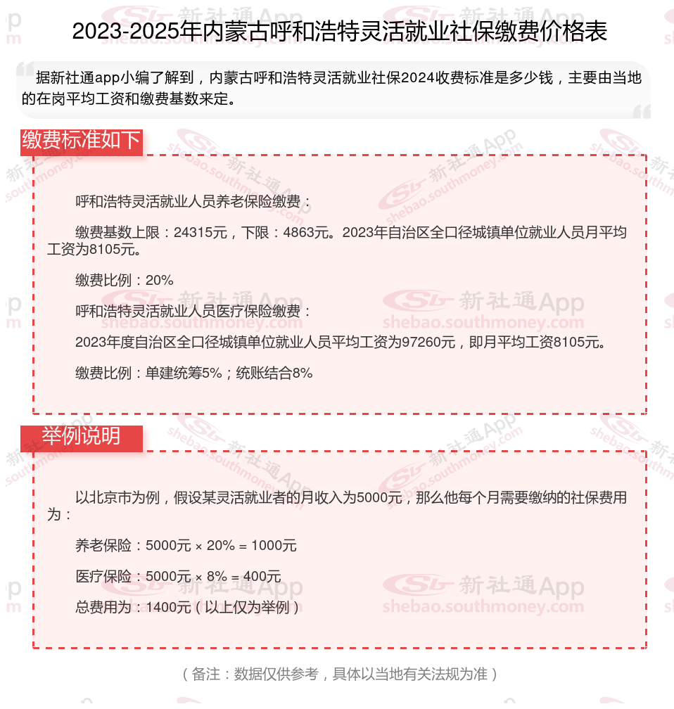 2025年内蒙古呼和浩特灵活就业人员社保需要交多少钱?社保缴费的金额取决于多个因素,包括缴费基数和缴费比例,且各地标准存在差异。下面随新社通小编一起来看看。